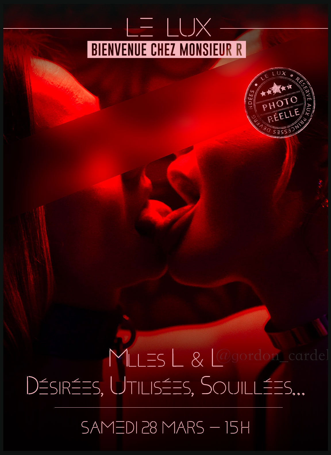 Mlle L (la blonde) se soumettra entièrement aux ordres de sa dominatrice du jour, l’autre Mlle L (la brune) qui l’offrira sans réserve au bon vouloir des Gentlemen présents. Mlle L (la brune) s’offrira également à vous, trop gourmande pour laisser passer ce moment devant ses yeux sans rien faire. Vous arrivez à suivre j’espère !
