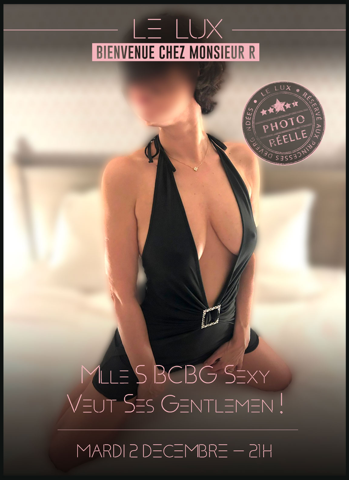 Mlle S, BCBG gourmande et sexy, souhaite un groupe de 4/5 gentlemen juste pour elle !